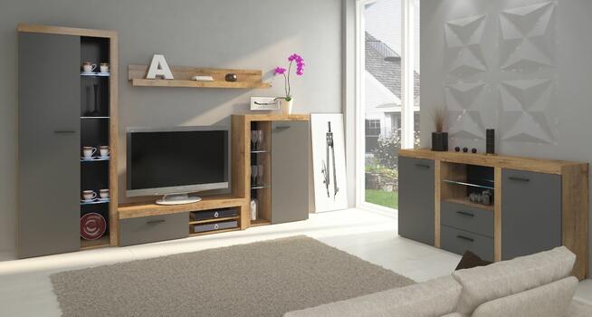 Sprzedam meblościankę koloru debu w bardzo dobrym stanie..Wysokosc mebli 2metry a szerokośc 290 cm
